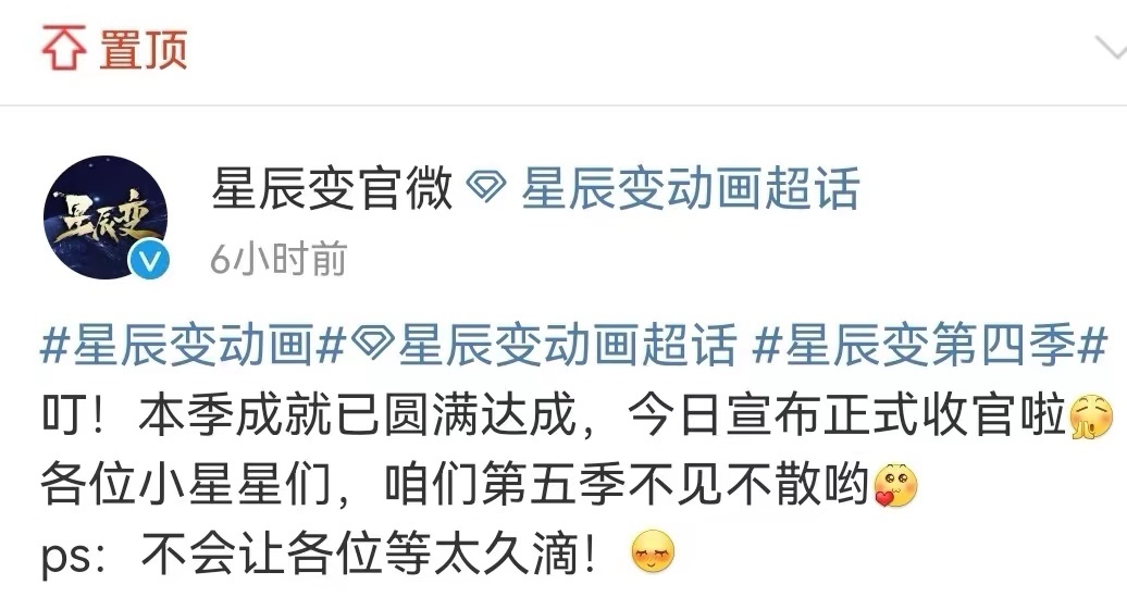 最后來(lái)說(shuō)一下這部作品第五季何時(shí)定檔。其實(shí)參考《星辰變》第三季和第四季播出時(shí)間就知道了。很多人以為一季完結了,最快也要一年之后才會(huì )再出,但是《星辰變》第四季打破了這個(gè)定律,沒(méi)有半年就復播了。